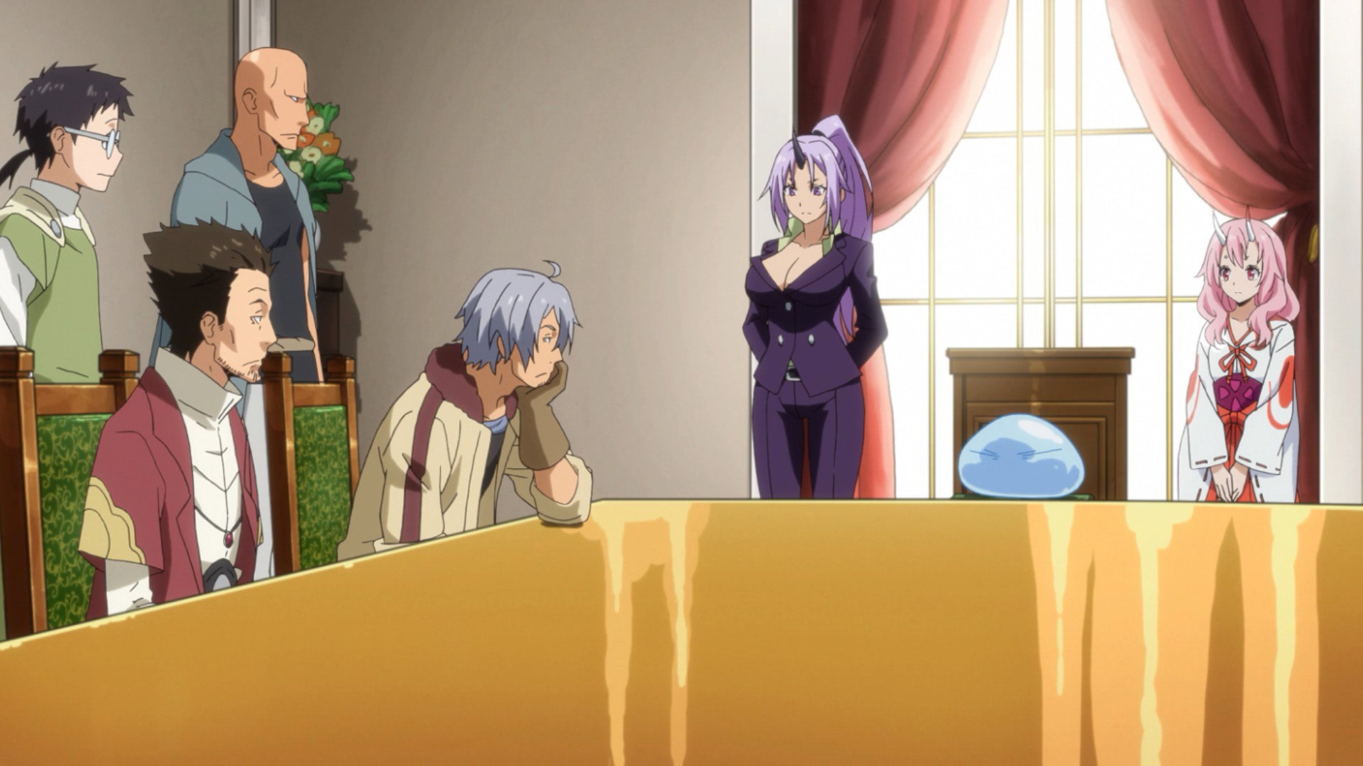 Rimuru and the Goblins' village is developing nicely. The Dwarves are building all kinds of houses and furniture, and the local Goblin Lords have appointed Rigurd as the Goblin King. As Rimuru watches everything come together, he decides to return to the cave and test the skills he received from Shizu. While there, he receives a request for help from Ranga through Thought Communication, and he rushes back to find his friends facing six Ogres. One of them orders Rimuru to "reveal his true identity." What is going on in the Great Forest of Jura?