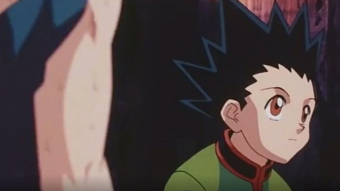 Gon and Killua are able to make it past Hisoka's Ren and enter the fights on the 200th floor of Heavens Arena. Gon immediately wants to test his new powers and fights against a man who uses his Nen and toy tops as weapons. He initially beats up Gon, but Gon learns to use his Zetsu to sense the tops and avoid them.