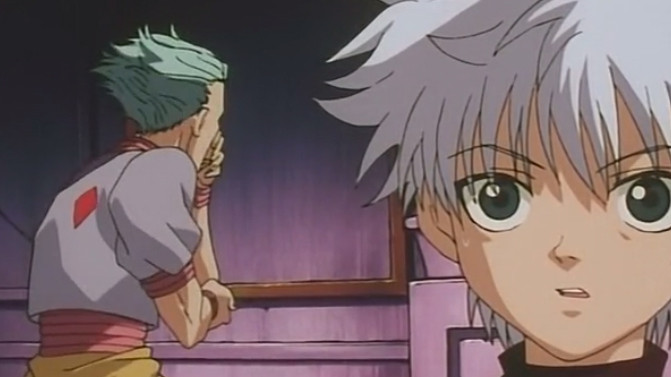 Killua and Gon learn about Nen from Wing, Zushi's teacher. Nen involves using your body's aura while fighting. On their way to register for the fights on the 200th floor, they're stopped by Hisoka. He doesn't think they're ready to fight at a high level. He uses his Nen to block them, and they have 3 hours to learn enough Nen to get past him, or Killua can never fight in Heavens Arena again.