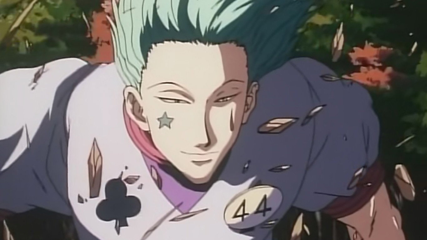 Hisoka determines the real examiner by flinging deadly playing cards at each man, reasoning the true Hunter will live, and it's Satotz. Later, he plays at being an examiner and kills many examinees. Although Hisoka is able to kill all of his intended victims, he recognizes that Gon and Leorio are special and lets them live.