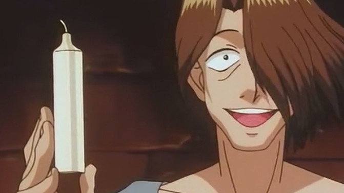 Gon faces the next prisoner, Sedokan, in a match to see who's candle can burn the longest. Gon is given a candle that burns quickly, but because of this it isn't susceptible to the wind, and Gon drops it on the floor and runs to blow out Sedokan candle. Kurapika engages in a death match with the next opponent, Majitani, but refuses to kill him after seeing red (literally) and knocking the criminal unconscious.