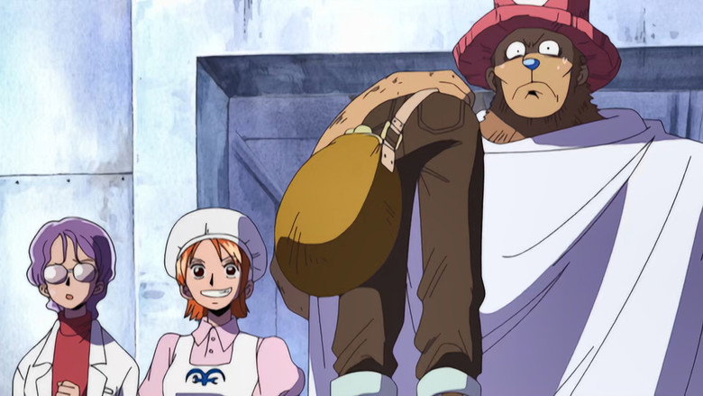 As the Straw Hats make their escape from Arabasta, Bon Kurei and his men serve to distract Black Cage Hina of the Marines. Meanwhile, Vivi must make a speech, but, more importantly, she must decide whether to stay with the Straw Hats.