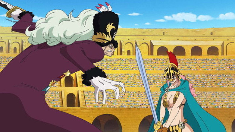 Zoro vs. Monet: a duel to the bitter end. But when Tashigi comes to lend a hand, she will need her full might to compensate for Zoro's weakness. Meanwhile, Mocha is running out of options for keeping the candy away from the children.