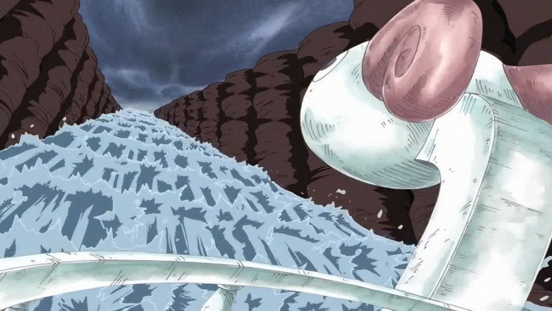 Following a near disaster in the Calm Belt, the Straw Hats take a wild ride up and down a mountain… and are promptly swallowed by a giant whale!