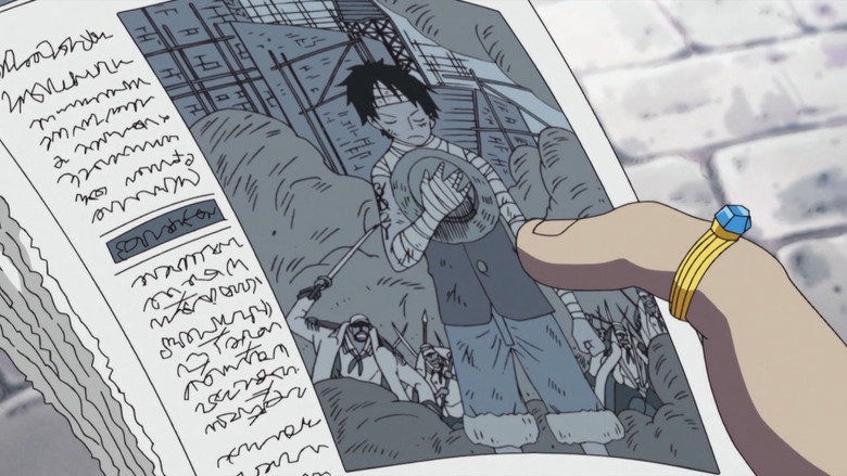 Luffy and his crew decide to lay low in town while Rayleigh coats the Sunny. Meanwhile, Admiral Kizaru from Marine HQ arrives on the archipelago in search of those responsible for threatening the Celestial Dragons.